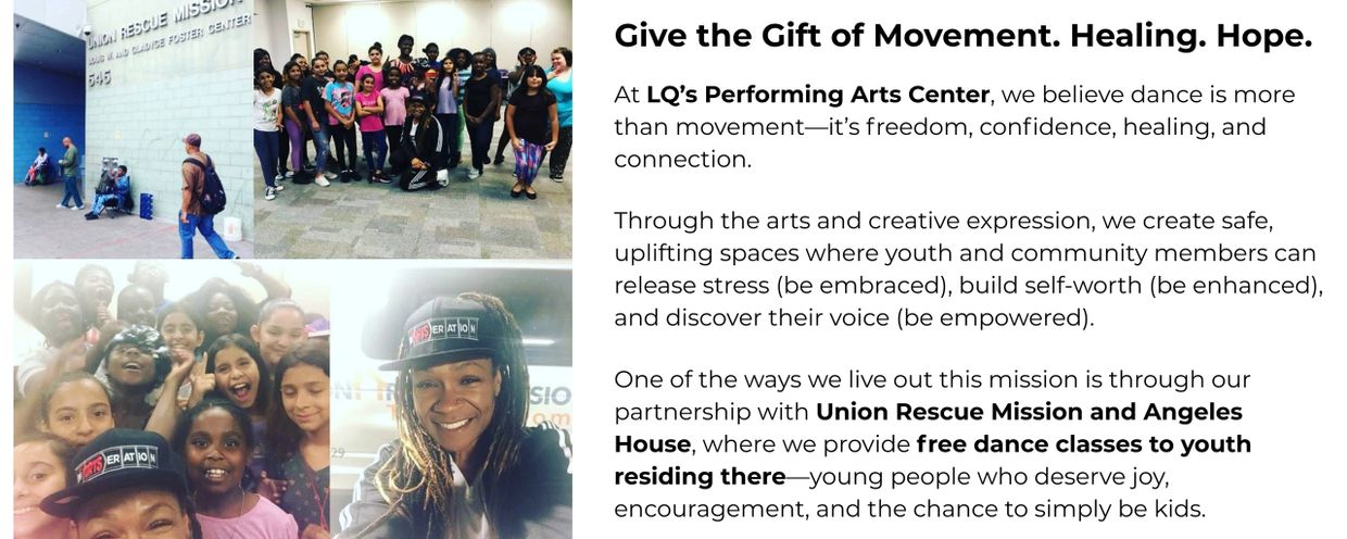 Your $50 donation directly covers the cost of a single youth participating in a hip-hop dance class.